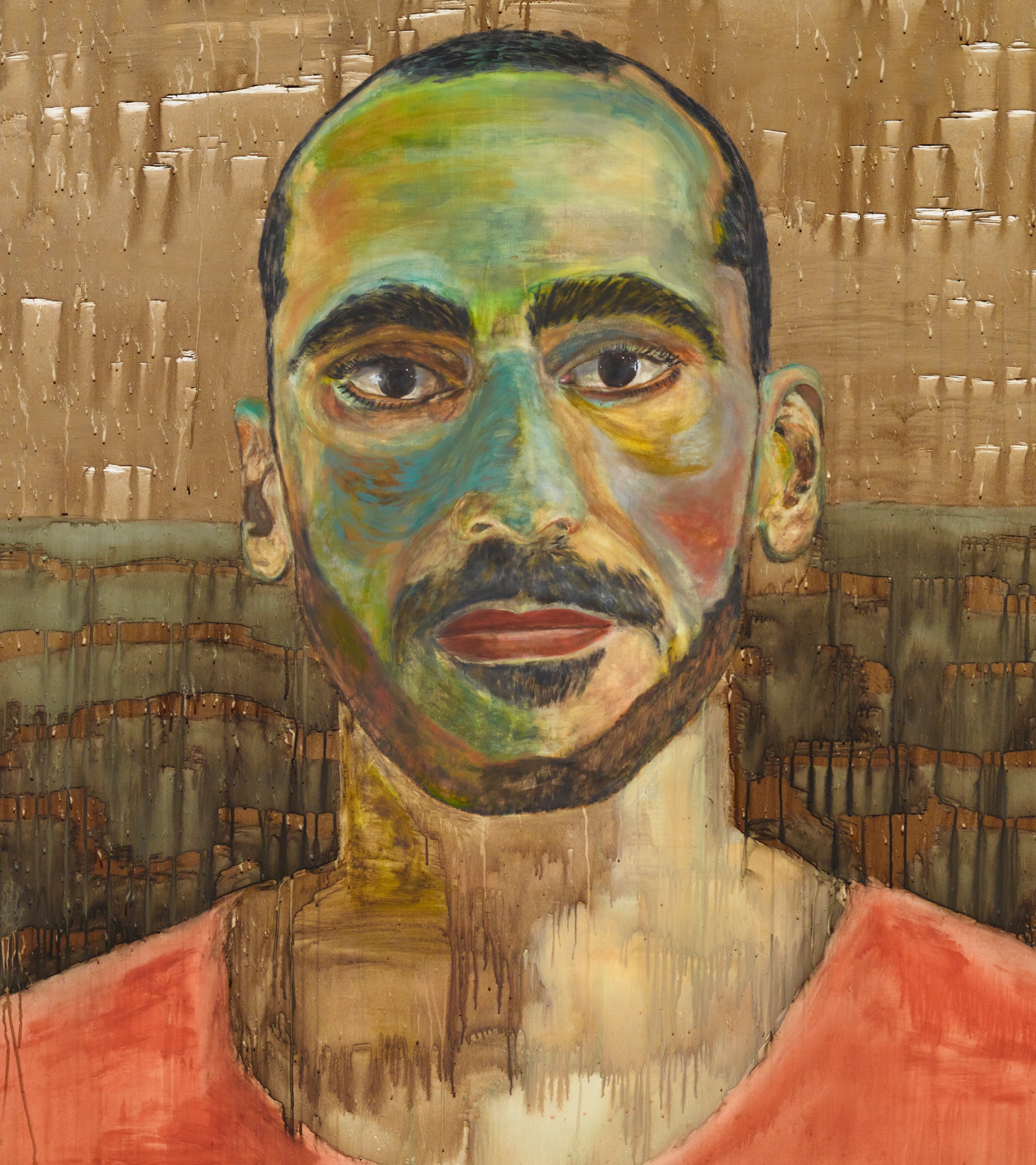 Image: MOSTAFA AZIMITABAR KNS088, coffee and acrylic on canvas, painted with a toothbrush, 190.5 x 191.8cm