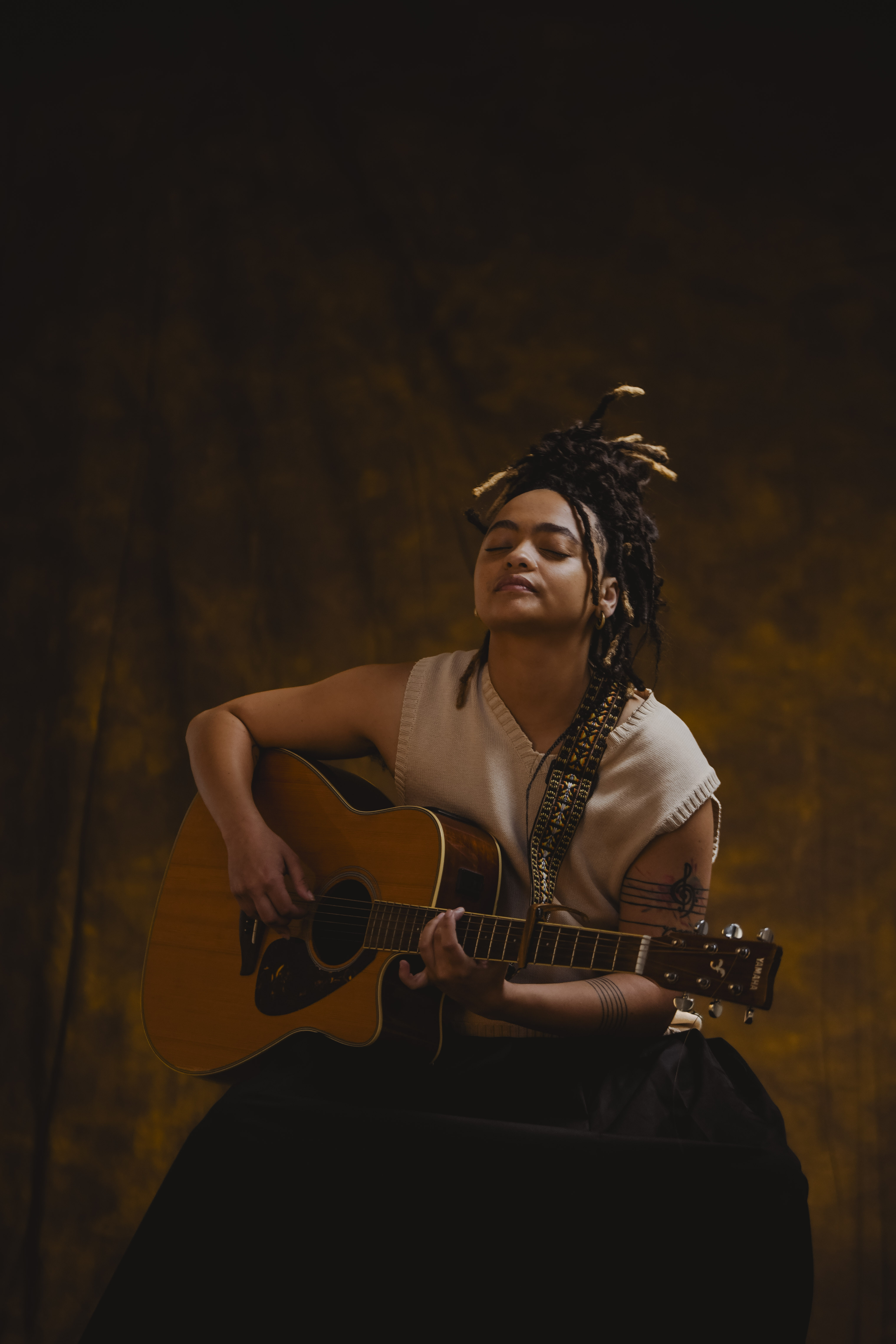 Mfalme’s ink-stained fingers play sweet melodic guitar alongside strikingly smooth vocals layered with a looping pedal; reminding you their name is Angel for a reason.